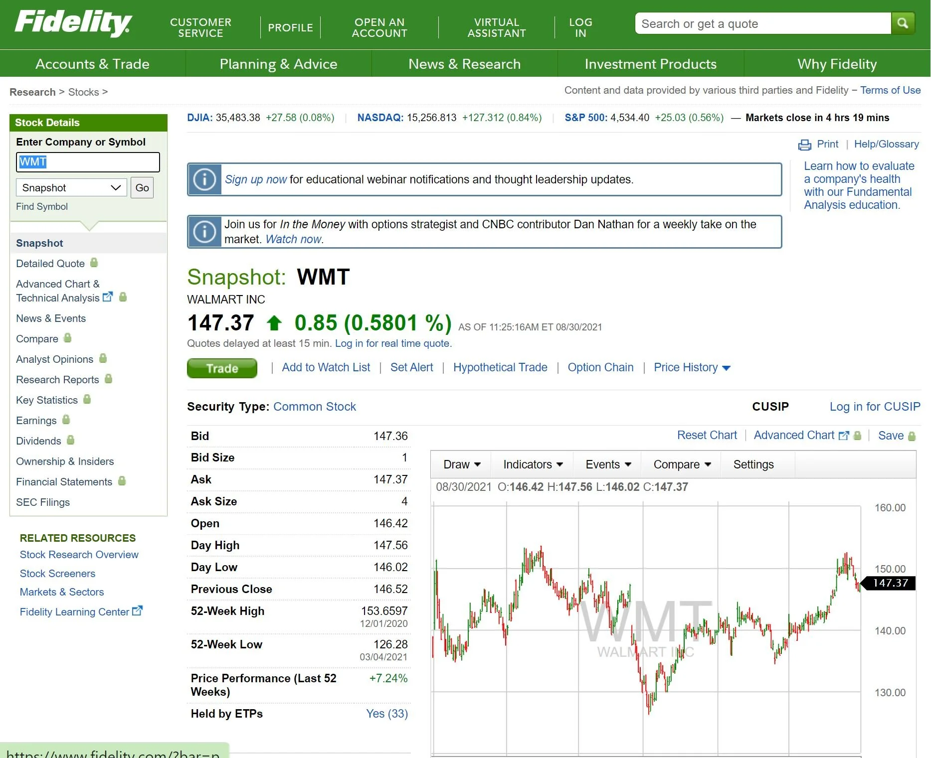 目前沃尔玛的股价(股票代号 WMT)站在147.37美元。 市值是412.95十亿美元。