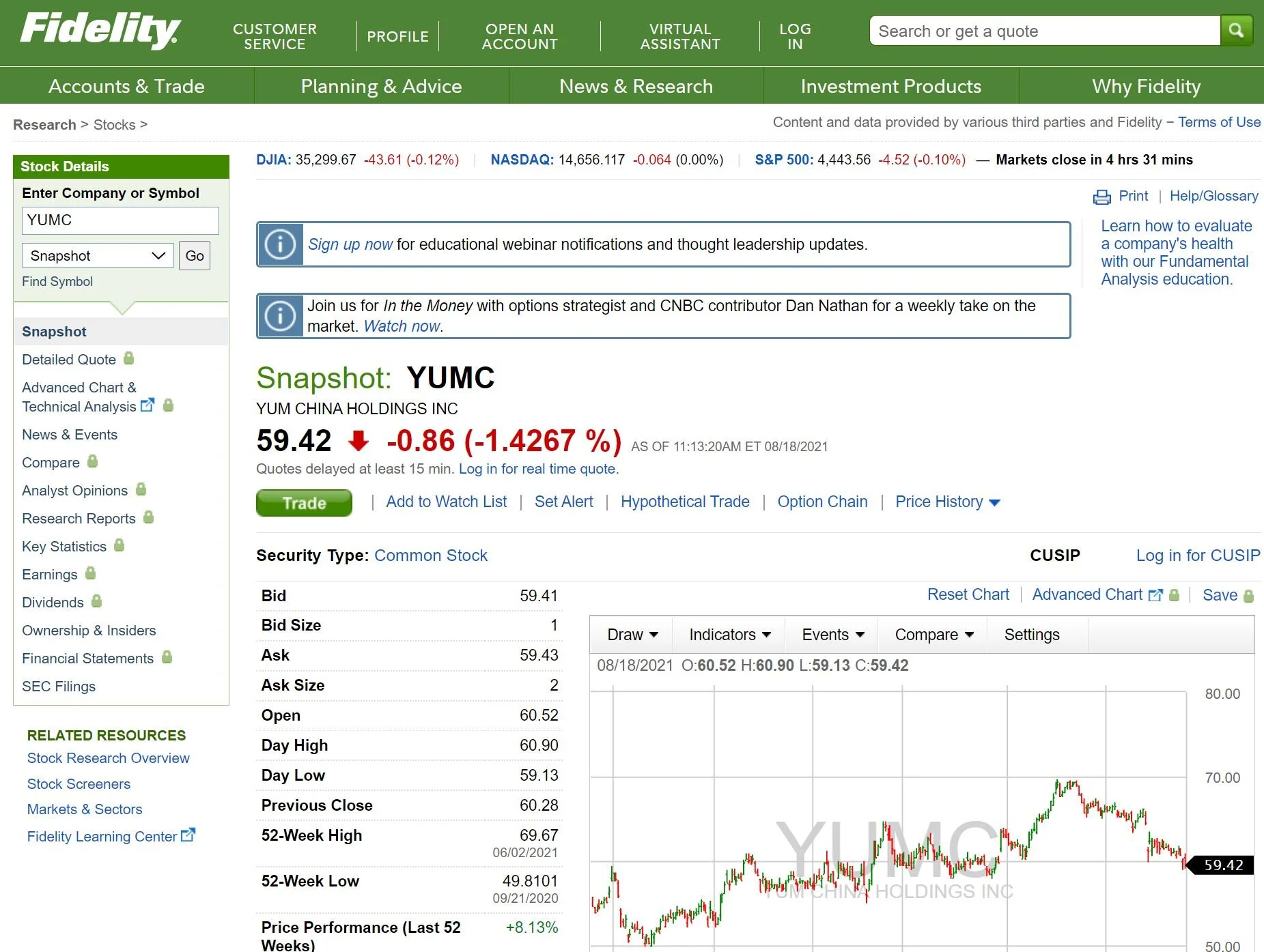 YUMC: Yum China 百胜中国公司股票指南 (食物)