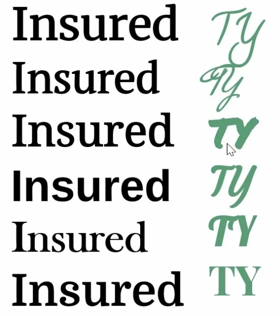 One process that we did to decide on a perfect font was to mix and match different “Insured” fonts and different “TY” fonts.