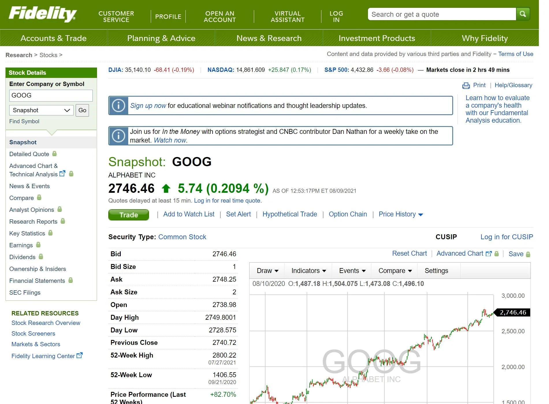 Fidelity: https://eresearch.fidelity.com/eresearch/goto/evaluate/snapshot.jhtml?symbols=GOOG