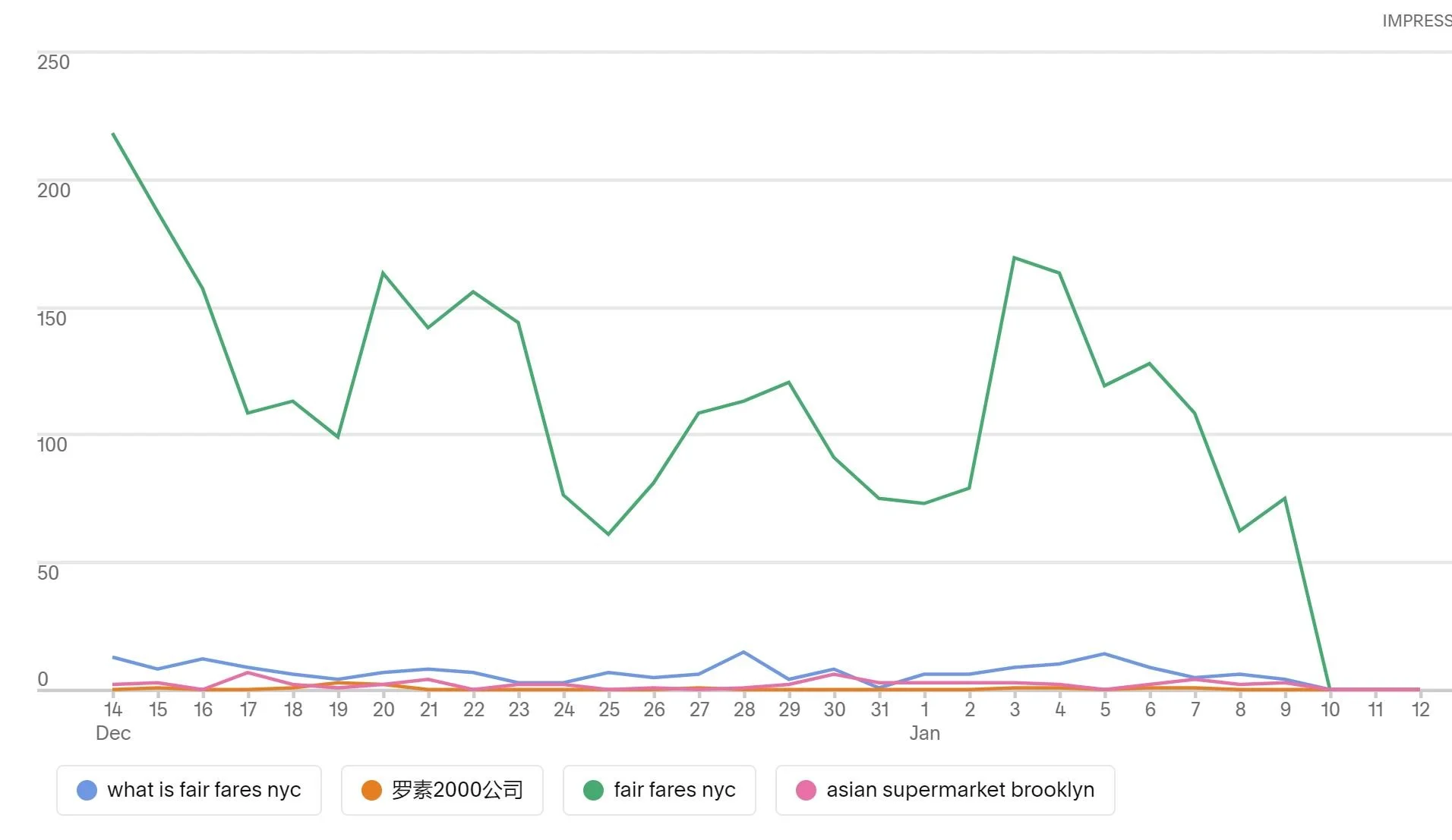 In terms of overall SEO we can see that the website is getting a decent amount of organic search traffic. The problem is that it is mostly for one keyword that is unrelated to our core business - “fair fares nyc”.
