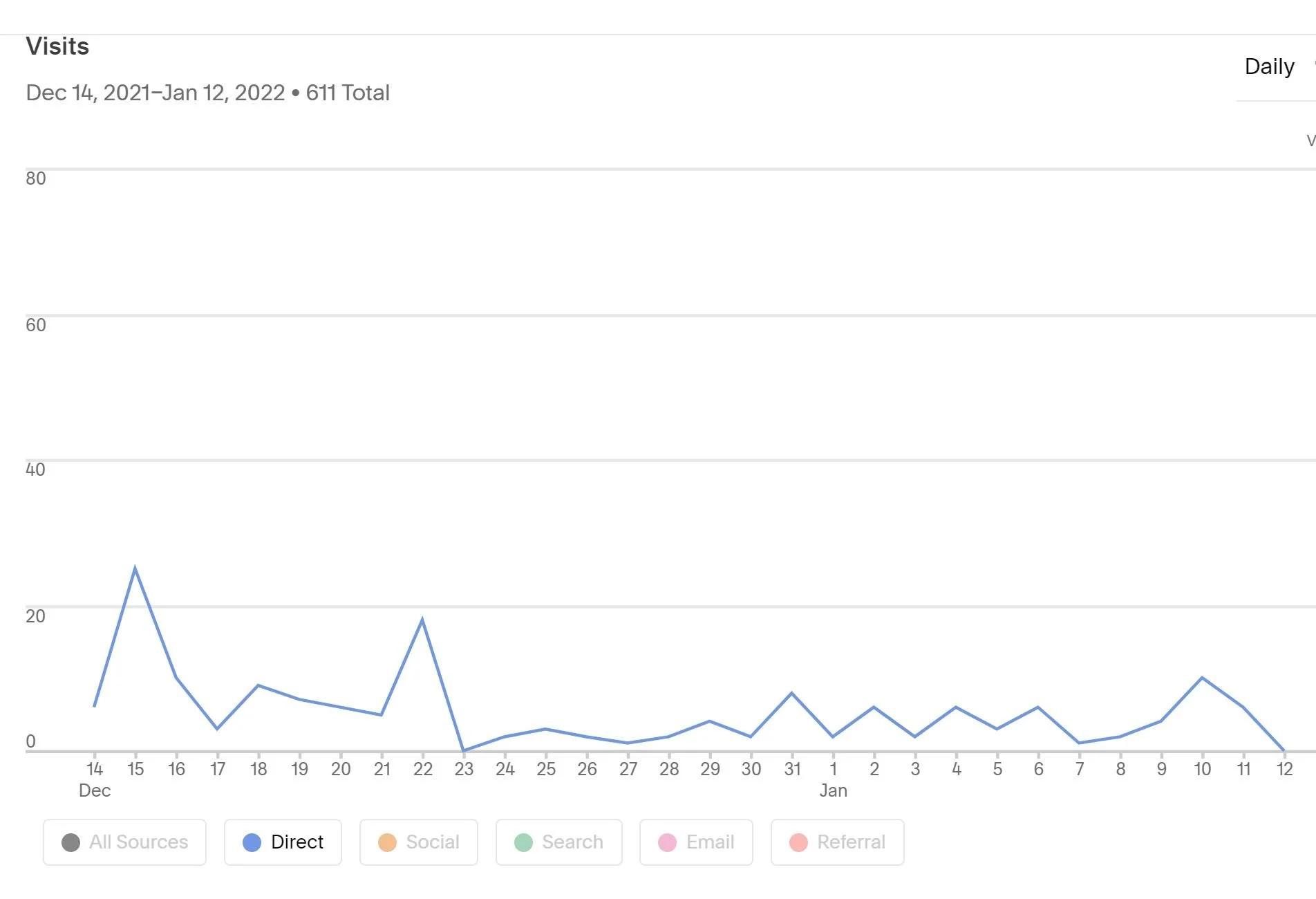 Direct traffic to the website is very low and most likely only generated by our team. Low direct visits to the website indicates that people are not familiar with our company and brand outside of the internet.