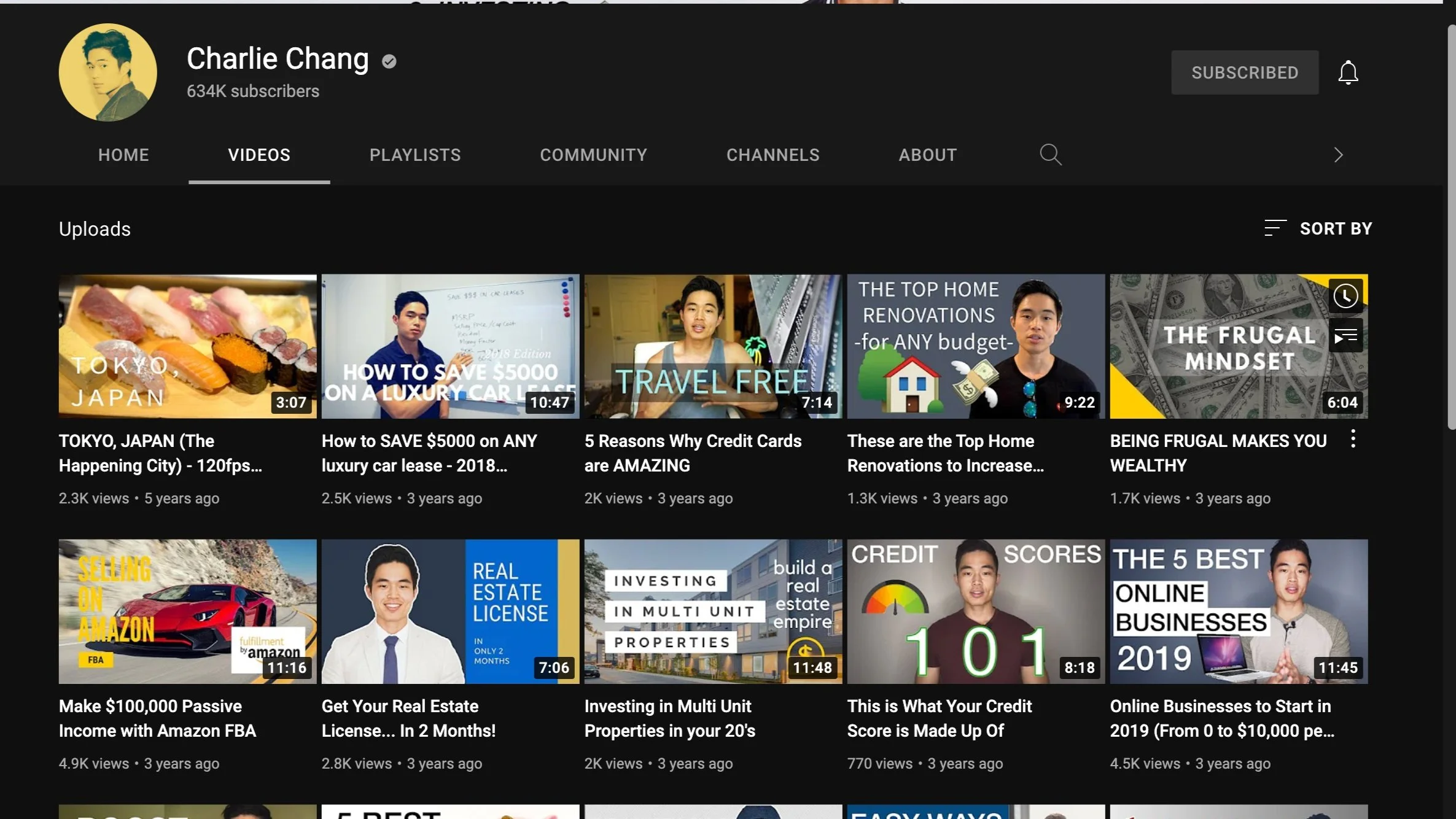 Charlie is a “29-year-old entrepreneur based in Southern California. He runs multiple businesses ranging from E-commerce to his own real estate brokerage and owns originate mortgages as well. He makes videos about personal finance, earning money online, investing, productivity, real estate, and entrepreneurship.” He joined Joined Jun 27, 2008, and has grown to over 634k subscribers!