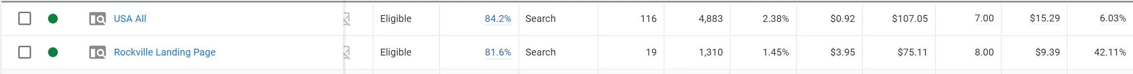 This month we launched two Google Ad campaigns with a total budget of $10. One campaign focused on Rockville and the other on all of the US. The All-US campaign had two ad sets, one general one linked to our “Family Landing Page” and another focusing on Tim Yang the agent which was linked to a “Zillow Landing Page” for Tim.